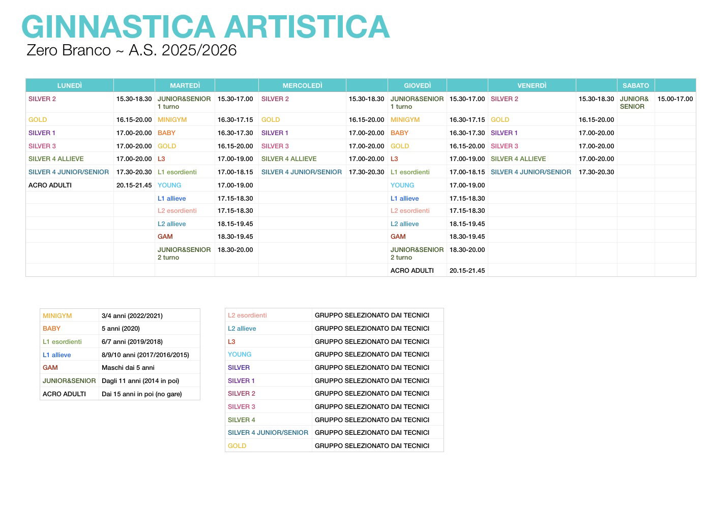 Il corso di ginnastica acrobatica è rivolto a ragazzi e ragazze a partire dai 16 anni e agli adulti, sia principianti che esperti e si svolge nella nuova palestra specialistica di Zero Branco.